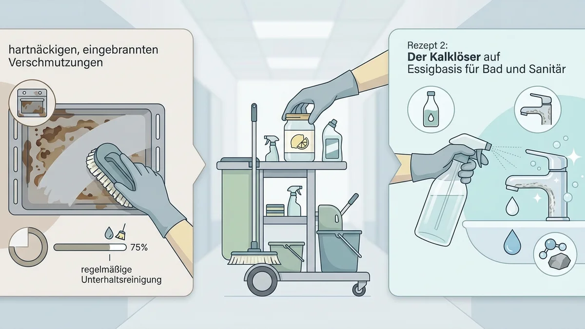 Ein Blick auf die Betriebskosten zeigt: Reinigungsmittel machen einen signifikanten Teil der laufenden Ausgaben aus. Industrielle Spezialreiniger sind oft teuer, und die Logistik für Beschaffung und Lagerung bindet Ressourcen. Die Grundzutaten für DIY-Reiniger – Natron, Essigessenz, Zitronensäure und Kernseife – sind hingegen extrem kostengünstig und in Großgebinden verfügbar.